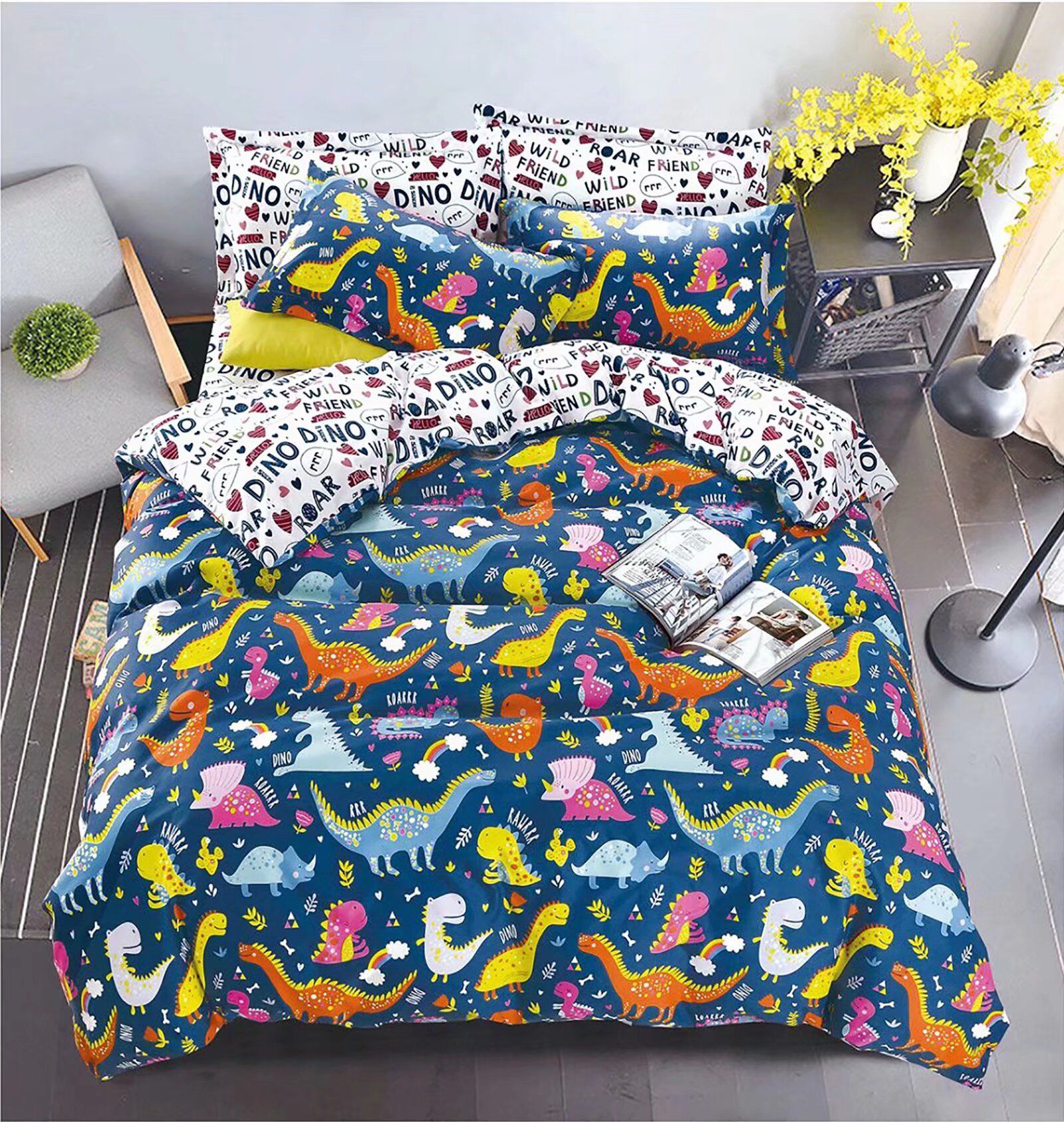 NOVINKA 2026 ! EXKLUZIVNÍ OBOUSTRANNÉ BAVLNĚNÉ POVLEČENÍ NA FRANCOUZSKOU PŘIKRÝVKU 200x220 / 70x90cm - DINO BLUE