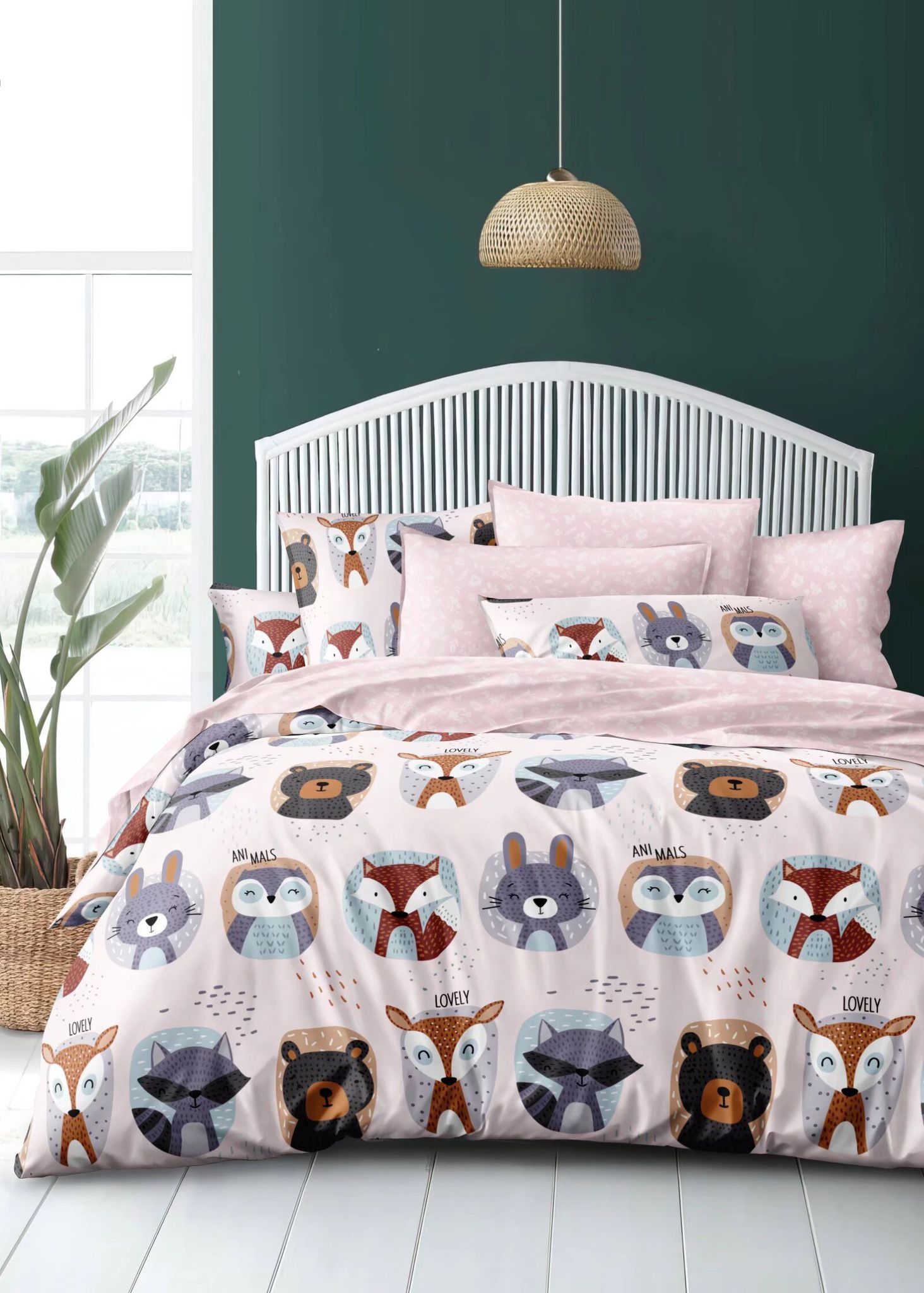 NOVINKA 2026 ! EXKLUZIVNÍ OBOUSTRANNÉ BAVLNĚNÉ POVLEČENÍ NA FRANCOUZSKOU PŘIKRÝVKU 200x220 / 70x90cm - LESNÍ ZVÍŘÁTKA