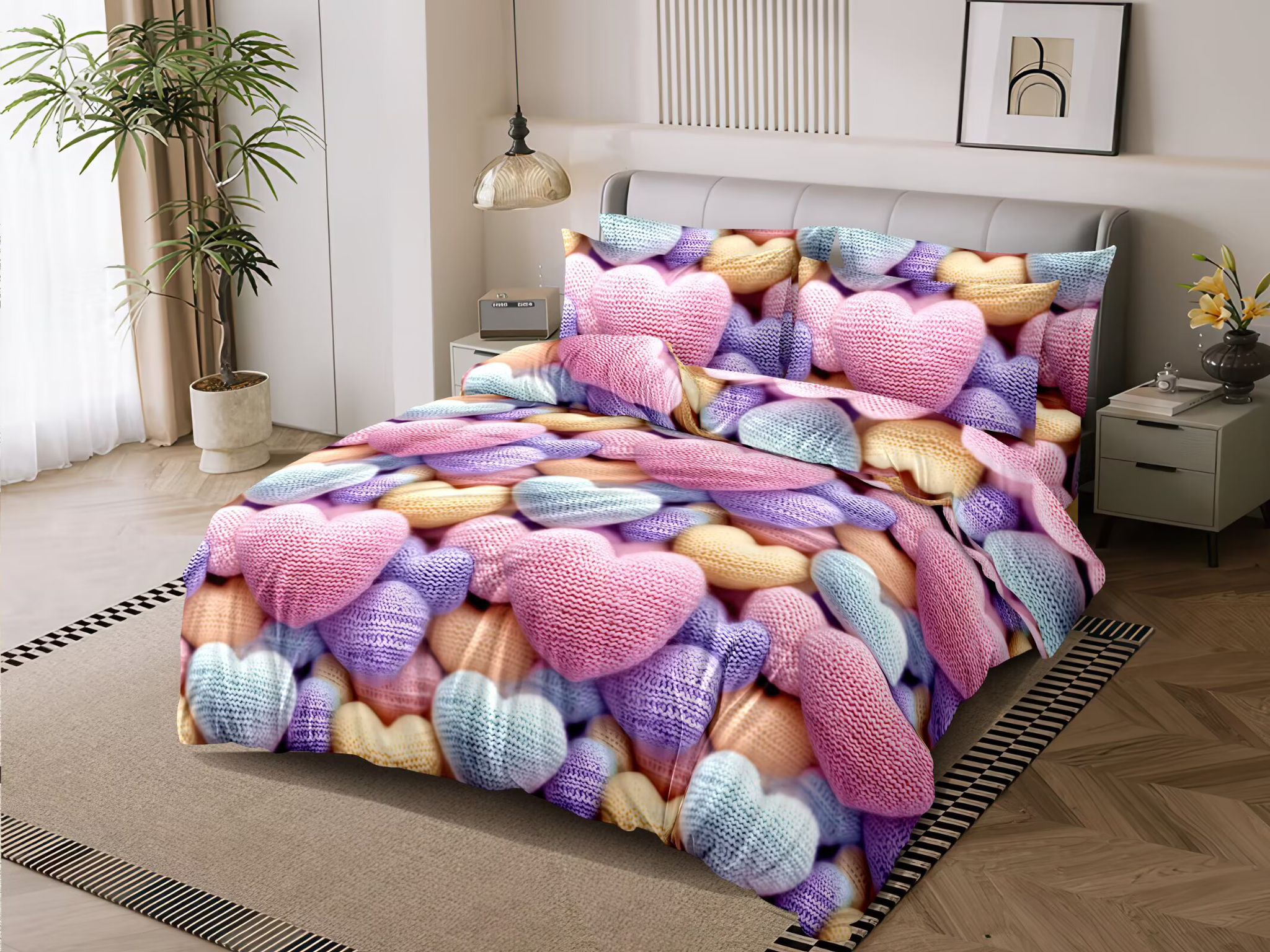 NOVINKA 2026 ! LUXUSNÍ BAVLNĚNÉ POVLEČENÍ na 2 postele 140x200/70x90 - PLETENÁ SRDÍČKA